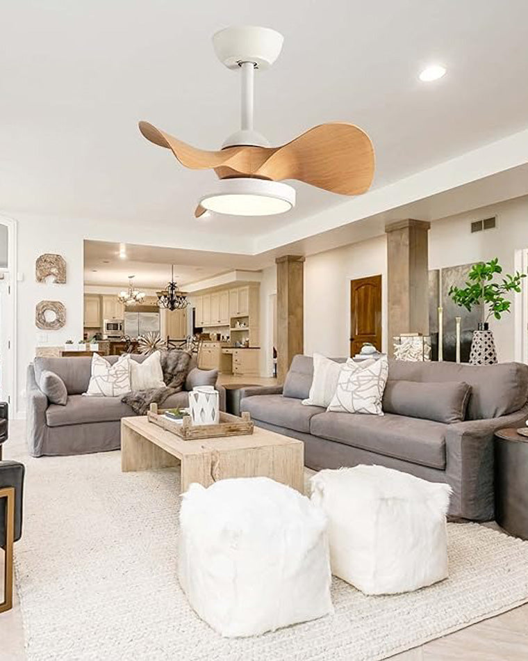Upgrade your space with the sleek and modern WOMO Small Ceiling Fan Lamp-WM5093. Featuring oak-imitated blades and a white finish, this fan adds style to any room. Perfect for a contemporary bedroom or nursery, it provides both comfort and design.