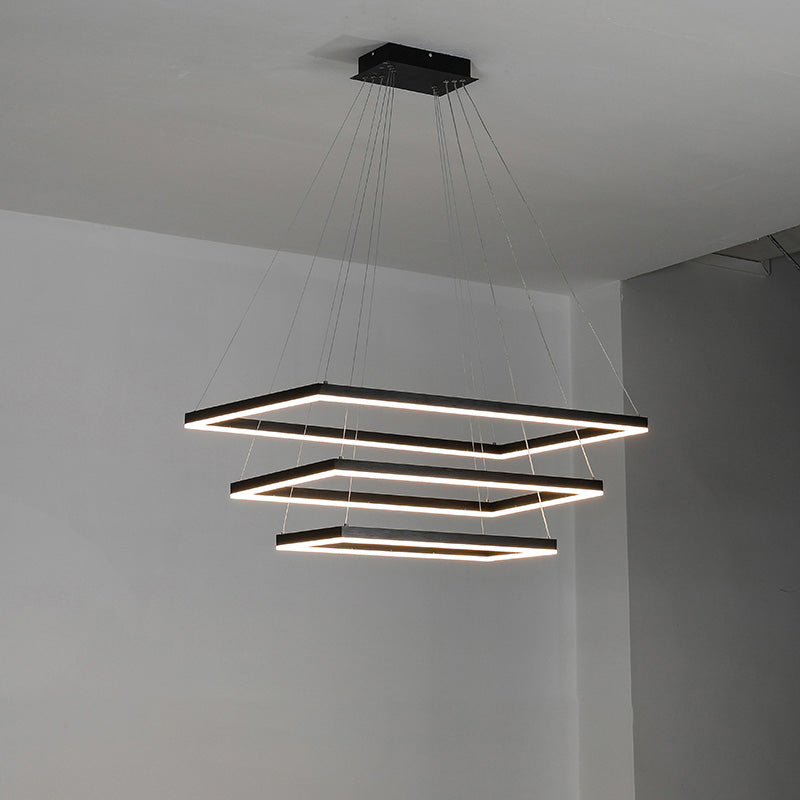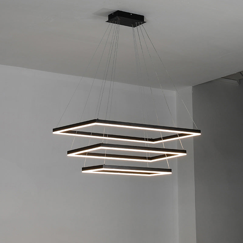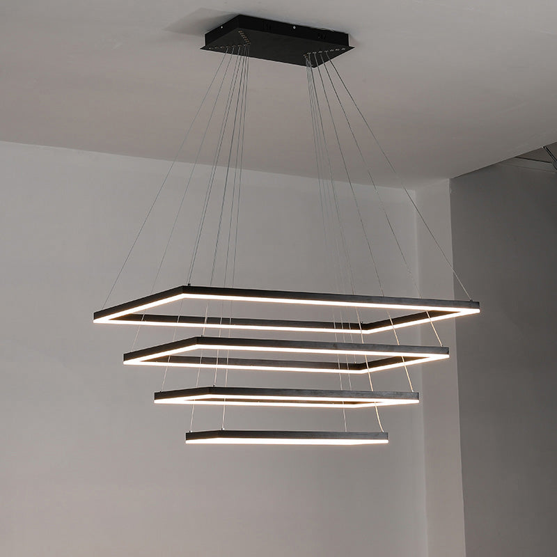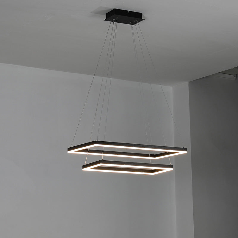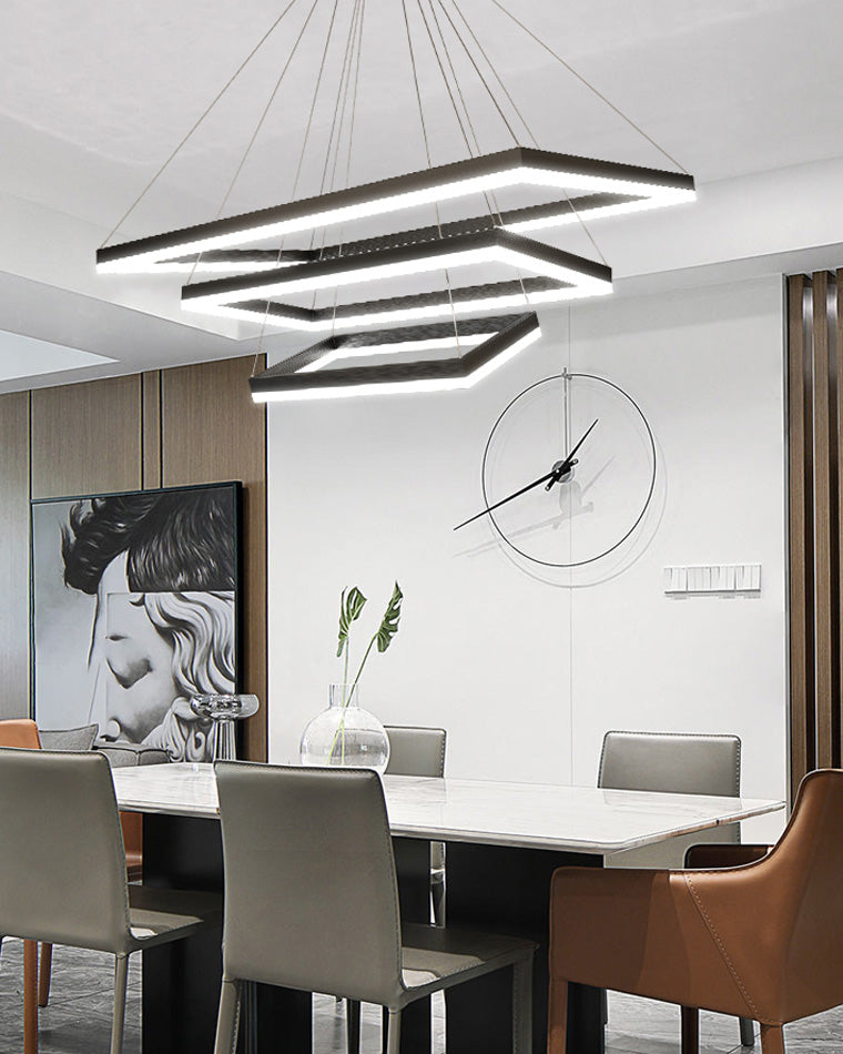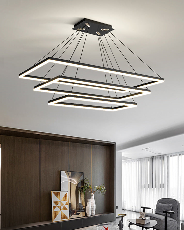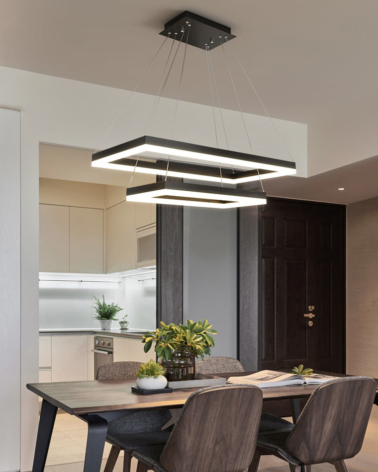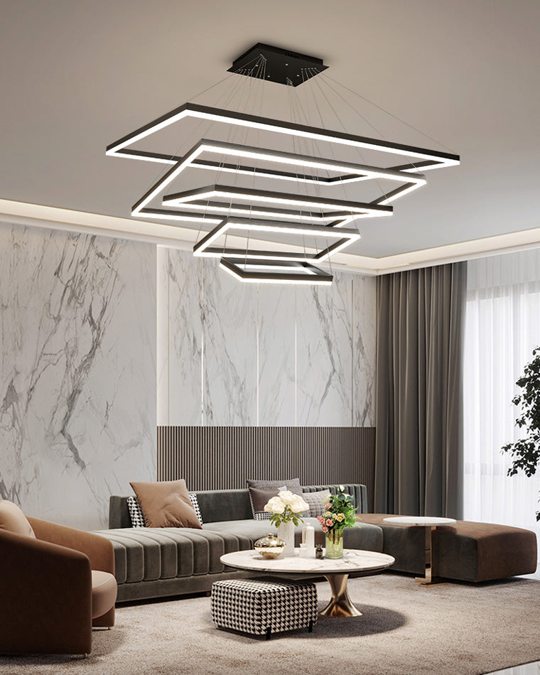 Elevate your living room or foyer with our WOMO Tiered Rectangular Chandelier! With a sleek black design and tiered, rectangular shape, this chandelier adds a touch of minimalist elegance to any space. Integrated LED lighting ensures both style and energy-efficiency. Experience a new level of beauty and functionality with our chandelier!