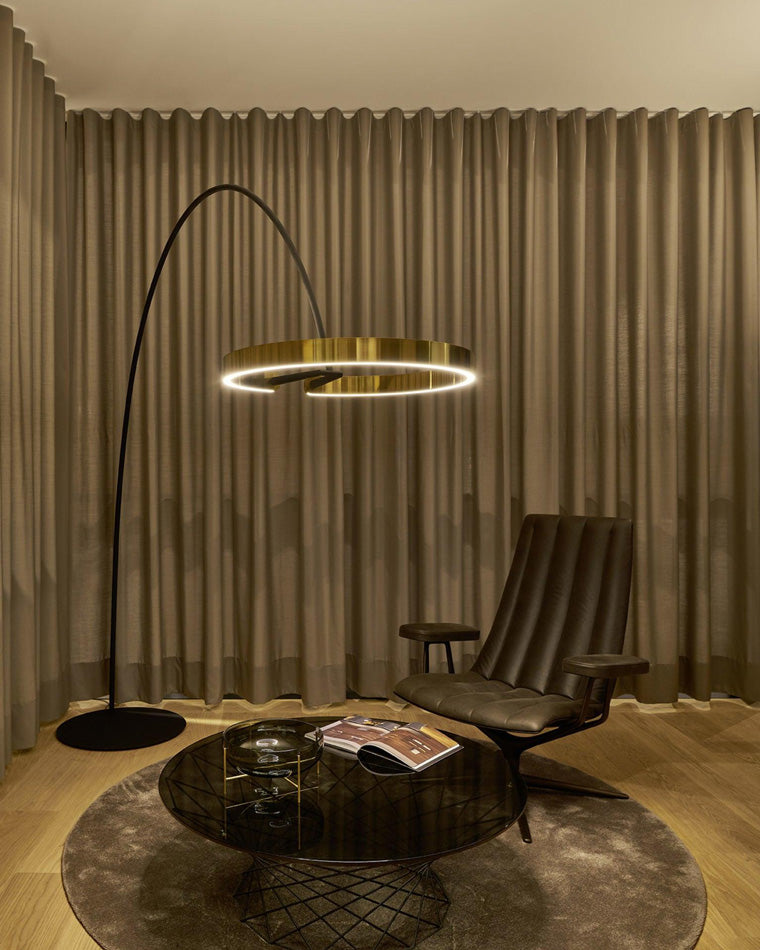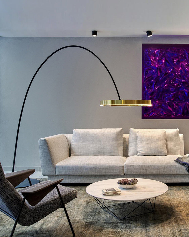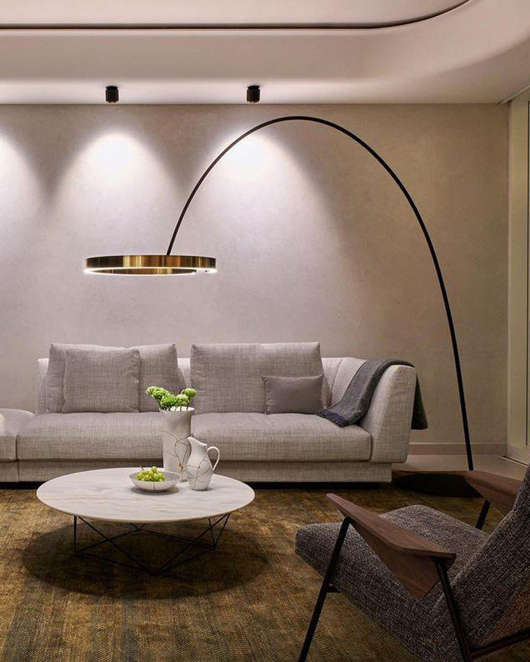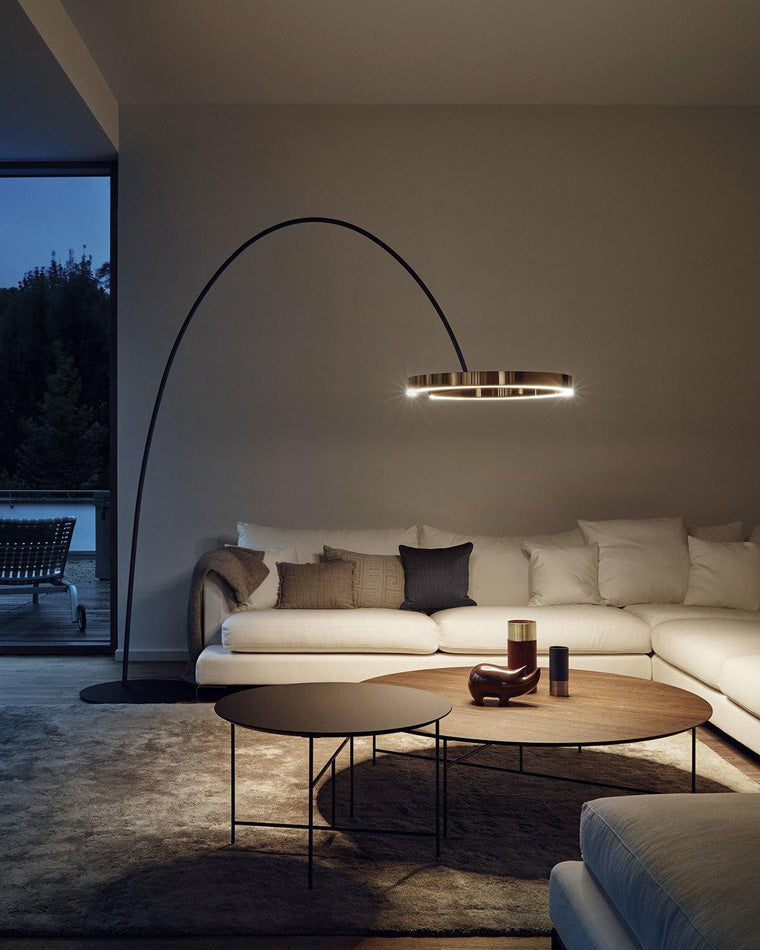 Upgrade your space with the WOMO Circular Arc Floor Lamp! Adjustable for reading or ambient lighting, its ring shade adds a decorative touch to any corner of office, living or dining room. Perfect for placing over or behind your couch. Brighten up your home with style!