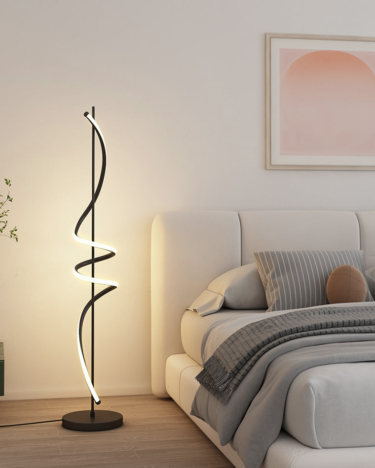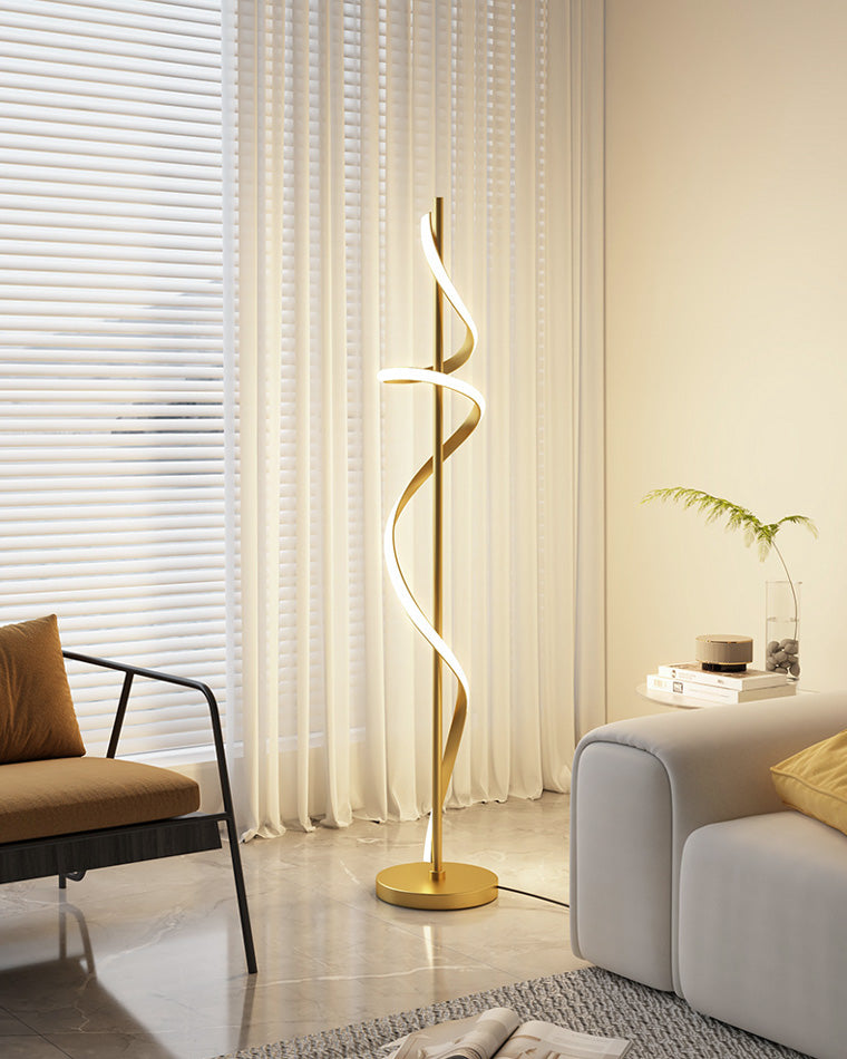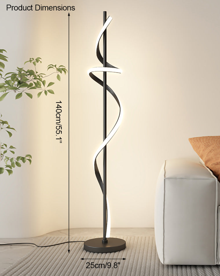 Illuminate any space with style using the WOMO Spiral Dimmable Ambient Floor Lamp. The unique spiral design, made of high-quality metal, adds a modern and aesthetic touch to your living room, bedroom, or corner. With dimmable capabilities, this lamp can provide the perfect amount of brightness for any occasion. Simple yet stunning, this lamp is both functional and decorative.