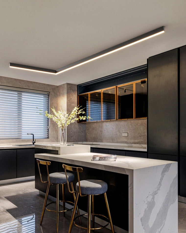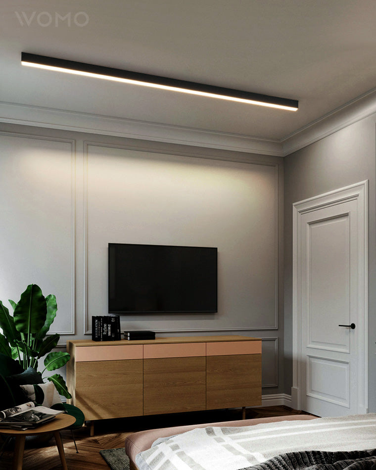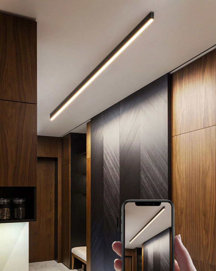 Elevate your space with the sleek and stylish WOMO Dimmable Long Linear Ceiling Light. Available in black, white, or imitated oak or walnut, this minimalist light adds a touch of sophistication to any hallway, garage, kitchen, or living room. Enjoy customizable brightness and a modern aesthetic with this must-have lighting fixture.