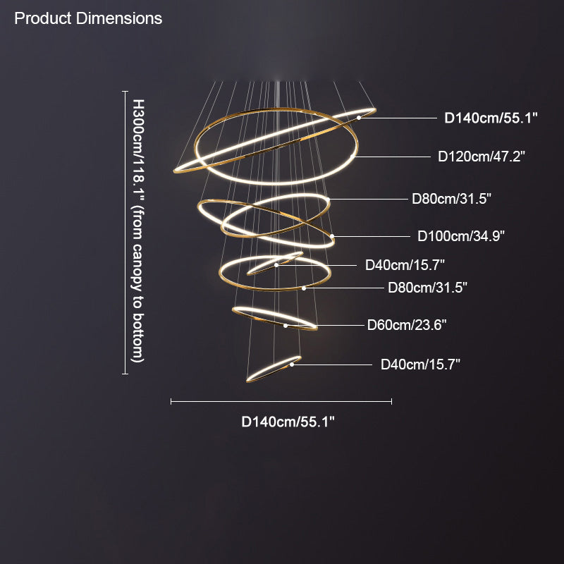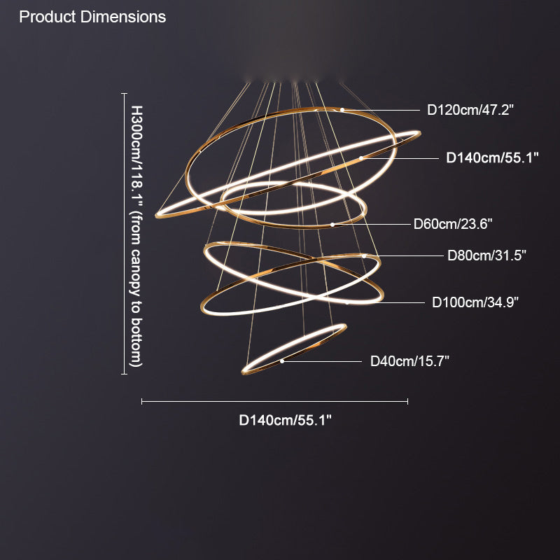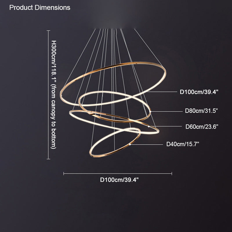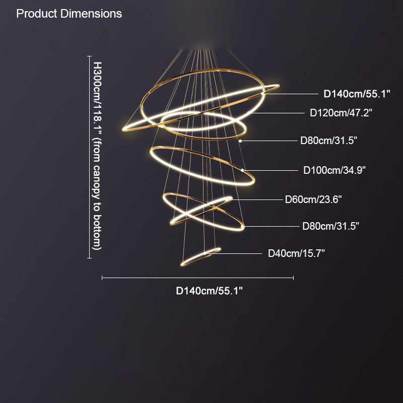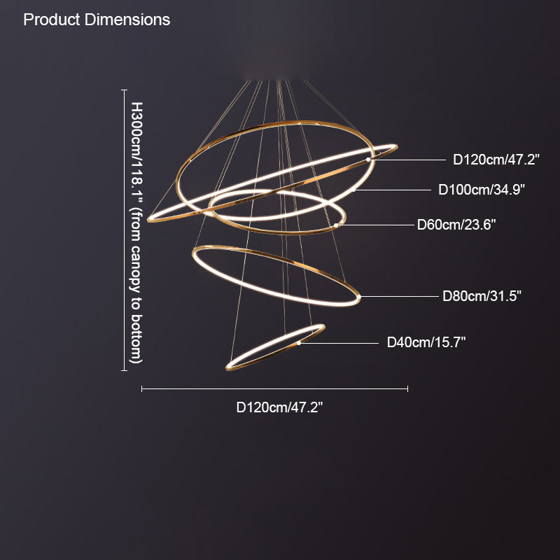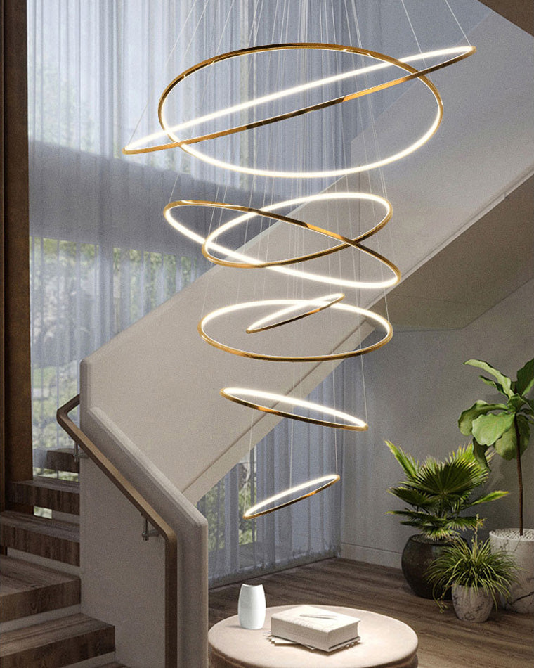 Elevate your foyer or staircase with the WOMO Large Tiered Ring LED Chandelier. Crafted from stainless steel, its multiple tiers design features a luxurious gold ring integrated with LED. Enhance your space with minimalist grandeur and create a stunning first impression.