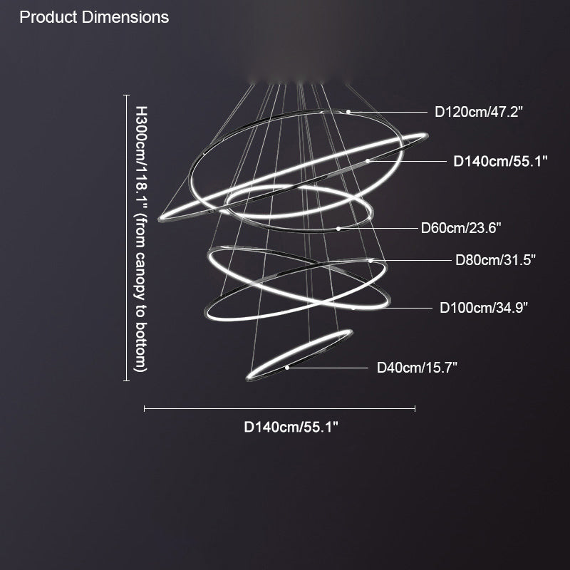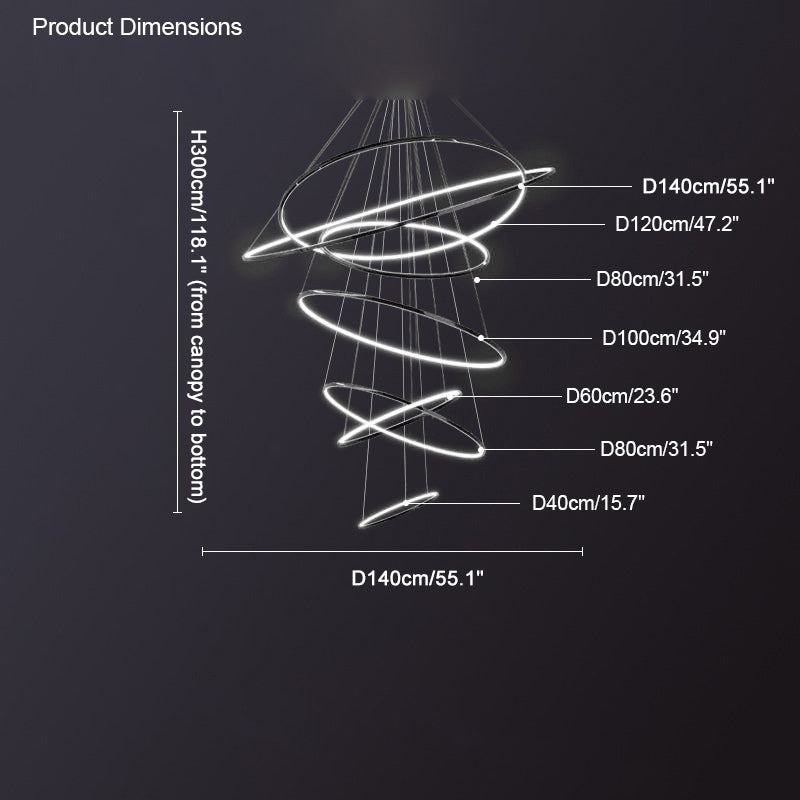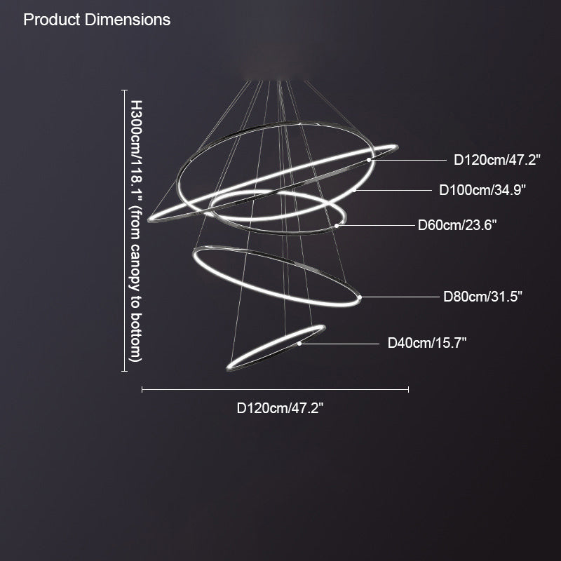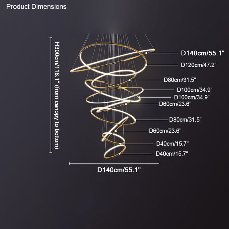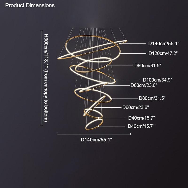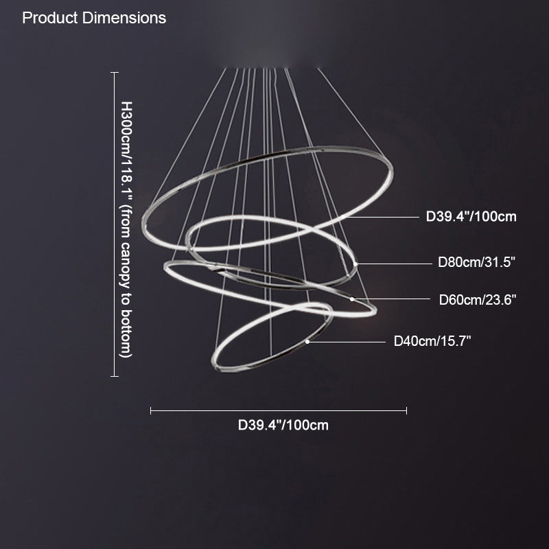 Elevate your foyer or staircase with the WOMO Large Tiered Ring LED Chandelier. Crafted from stainless steel, its multiple tiers design features a luxurious gold ring integrated with LED. Enhance your space with minimalist grandeur and create a stunning first impression.